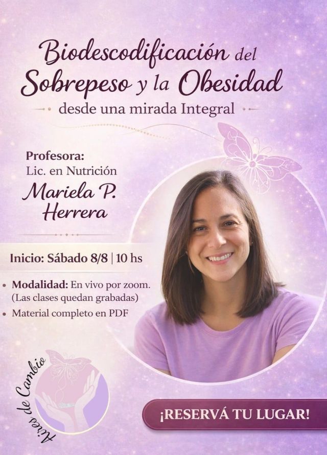 De la mano de la Lic. en Nutrición Mariela Herrera, te traemos esta hermosa formación en Biodescodificación del sobrepeso y la obesidad, desde una mirada integral.